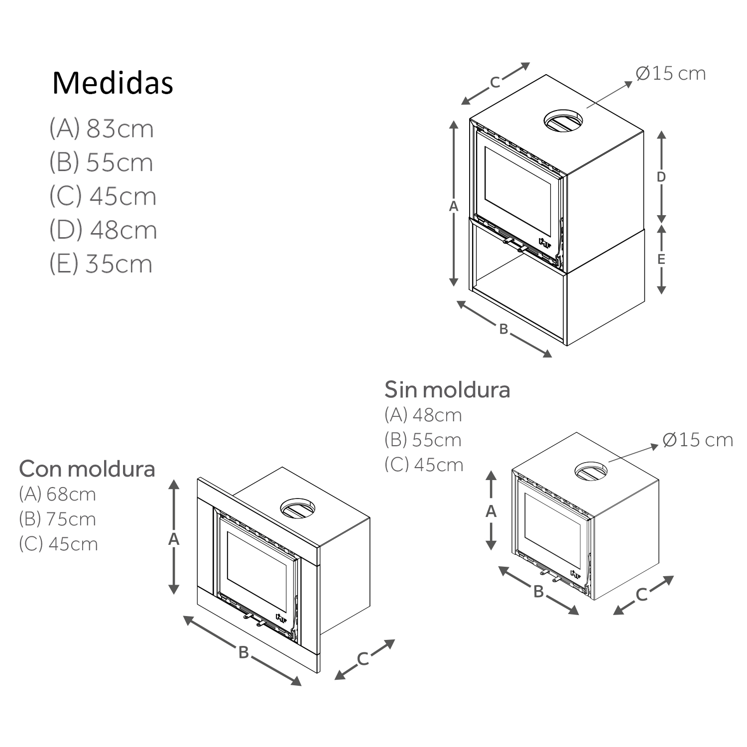 La chimenea de leña empotrada MF Adatto 55 es la opción ideal para quienes buscan un diseño limpio y un rendimiento de calefacción superior. Con líneas sencillas y elegantes, se integra a la perfección en cualquier ambiente, ofreciendo no solo una estética sofisticada, sino también una solución eficiente para calentar el espacio con comodidad y estilo.