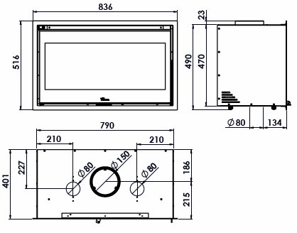 Material exterior: Acero / Material hogar: Vermiculita / Cristal serigrafiado / Visión del fuego: Alta