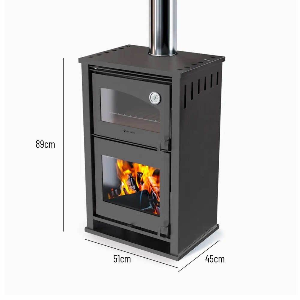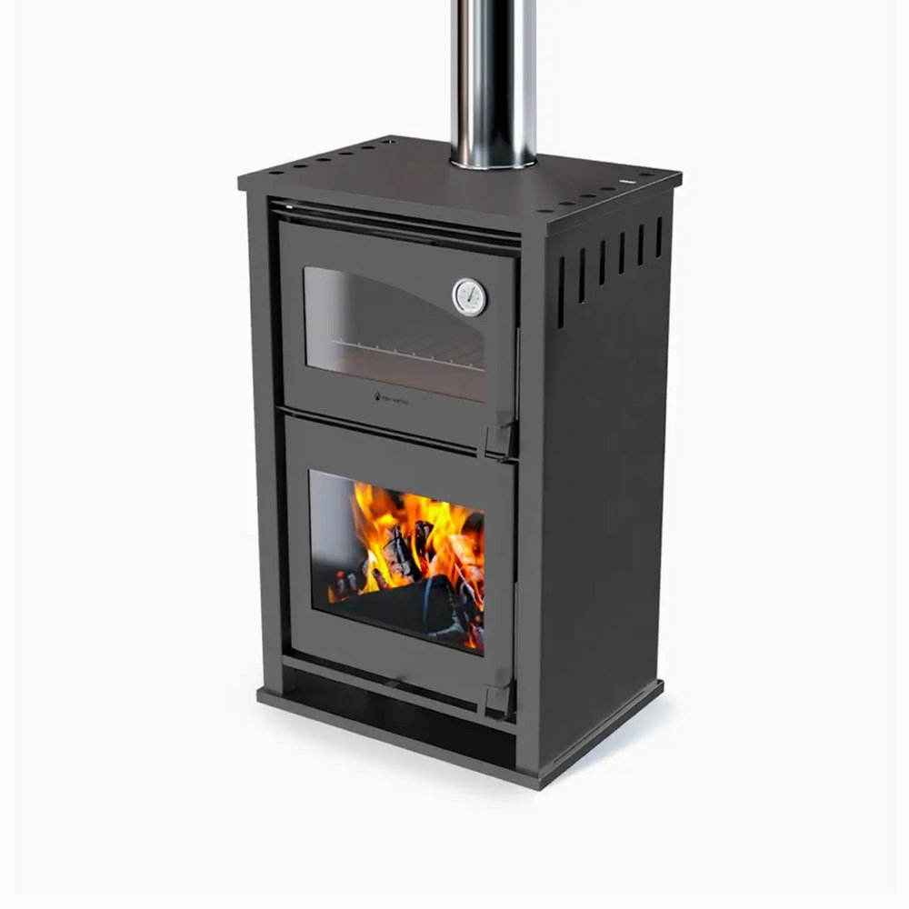 Forno de Eko Varmo es la solución ideal para quienes buscan una estufa con horno integrado. Su sistema de gases utiliza la doble combustión para eliminar olores y asegura cocciones uniformes y precisas. El revestimiento de vermiculita y el termómetro incorporado garantizan eficiencia y control de temperatura. Con un horno con piso de tejuela refractaria, permite cocinar a la piedra. Además, su innovador sistema de deshollinado interno simplifica el mantenimiento. Forno es, sin duda, la elección más destacada en estufas con horno en Uruguay.