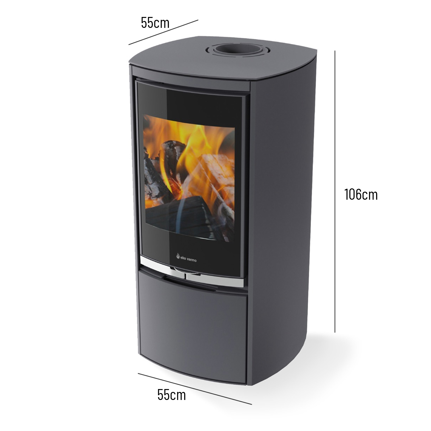 La estufa Imagine de Eko Varmo representa la cúspide de la innovación y el diseño, destacándose por su forma redonda única. Con un doble deflector y revestimiento de vermiculita, esta estufa garantiza una eficiencia superior. El vidrio serigrafiado y el diseño minimalista, junto con el leñero escondido, hacen de la Imagine la estufa más destacada de Eko Varmo.