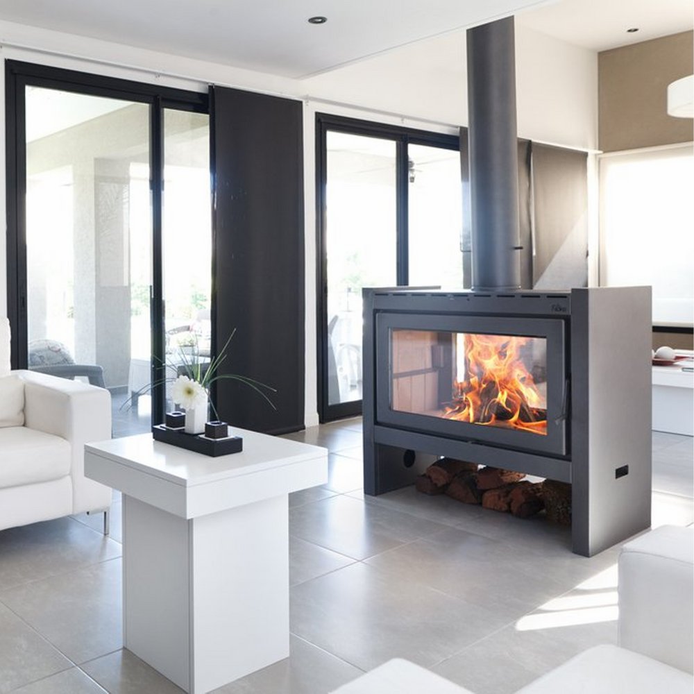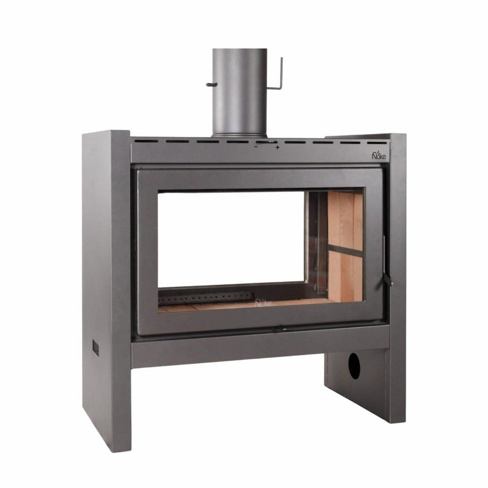 La estufa a leña más grande de Ñuke de 25.000 K/cal. Para superficies de 120 a 200 m2. Recubierto en todo el interior con refractarios, posee dos cámaras de combustión, donde se queman todos los gases (no emite humo ni olor), su sistema de doble combustión logra un alto rendimiento de biomasa. Tiene una gran visibilidad del fuego y su diseño apaisado la hace moderna e imponente. . Entrada del aire vertical para limpiar el vitrocerámico , pintura de alta temperatura, cierre de puerta con un cordón de fibro cerámica y bisagras ocultas. Se genera calor por convección y por radiación, con el mismo sistema de combustión Ñuke.