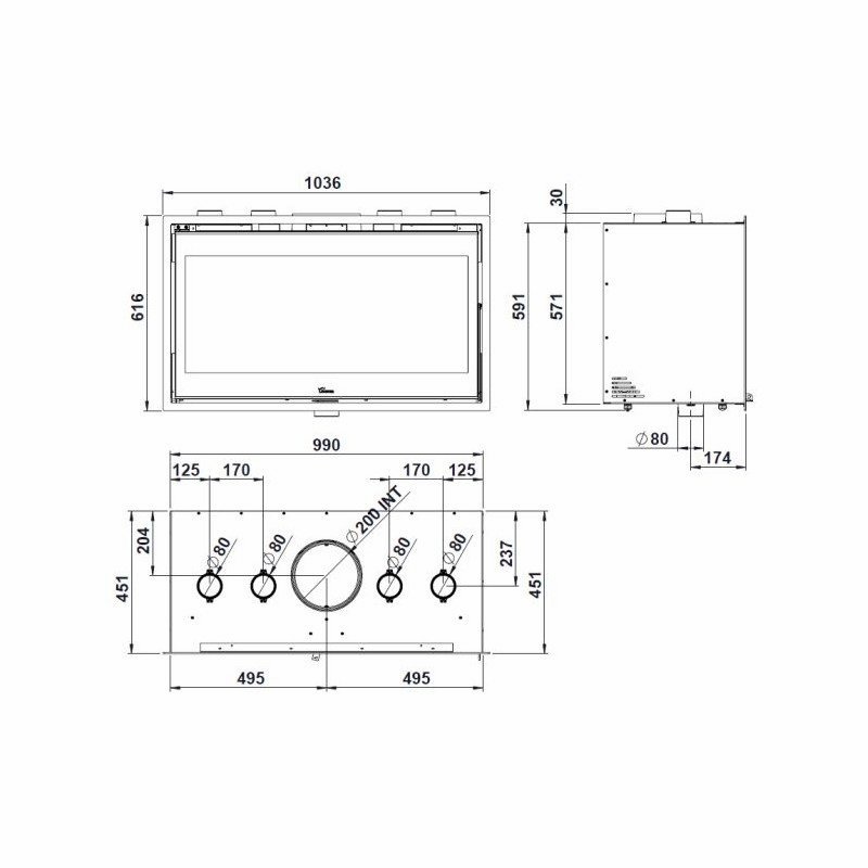 - Salida de humos: Ø200 mm