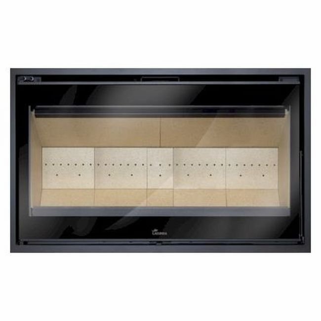 Fabricado en acero e interior vermiculita. Cristal serigrafiado con una visión del fuego muy alta.