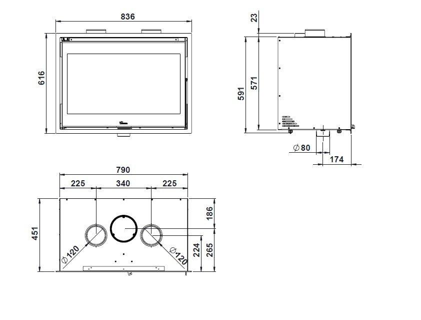 Material exterior: Acero / Material hogar: Vermiculita / Cristal serigrafiado / Visión del fuego: Alta