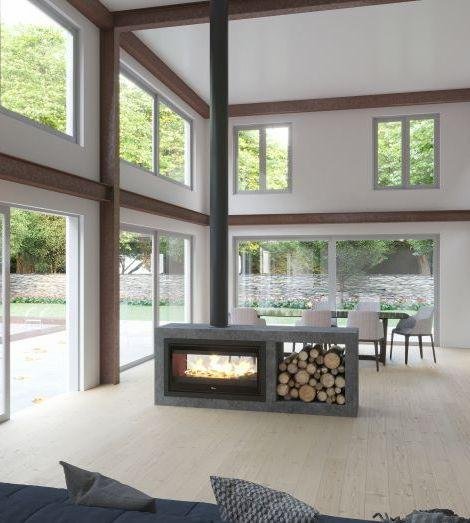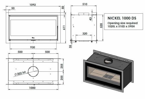 La nueva chimenea de leña NICKEL, viene con un novedoso diseño a doble cara, el primero con estas características de LACUNZA. Esto lo hace muy decorativo y ofrece mayor visión del fuego pudiendo verlo desde distintas habitaciones. Además, supone un gran ahorro ya que gracias a que es bifacial, calienta y decora distintas estancias al mismo tiempo. Altas prestaciones Dispone de entrada de aire primario para un rápido encendido, y de entrada de aire secundario, para que el cristal se mantenga notablemente más limpio.Gracias a la tecnología, Easy Fire Control del aparato, se puede regular la óptima combustión y la limpieza del aparato de leña con un único mando.Dispone también de otras Innovaciones Tecnológicas como lo son External Air Intlet, sistema canalizable que toma el aire desde el exterior de la vivienda para su combustión y que disminuye el consumo, Perfect Combustion, tecnología de quemado óptimo con la que se logran altos valores de eficiencia de combustión, Extra Clean Glass, un novedoso sistema de entrada de aire al cristal para mantenerlo limpio más tiempo o Cleaning Access que permite deshollinar el insertable fácilmente.