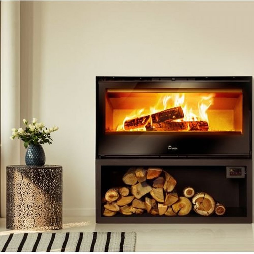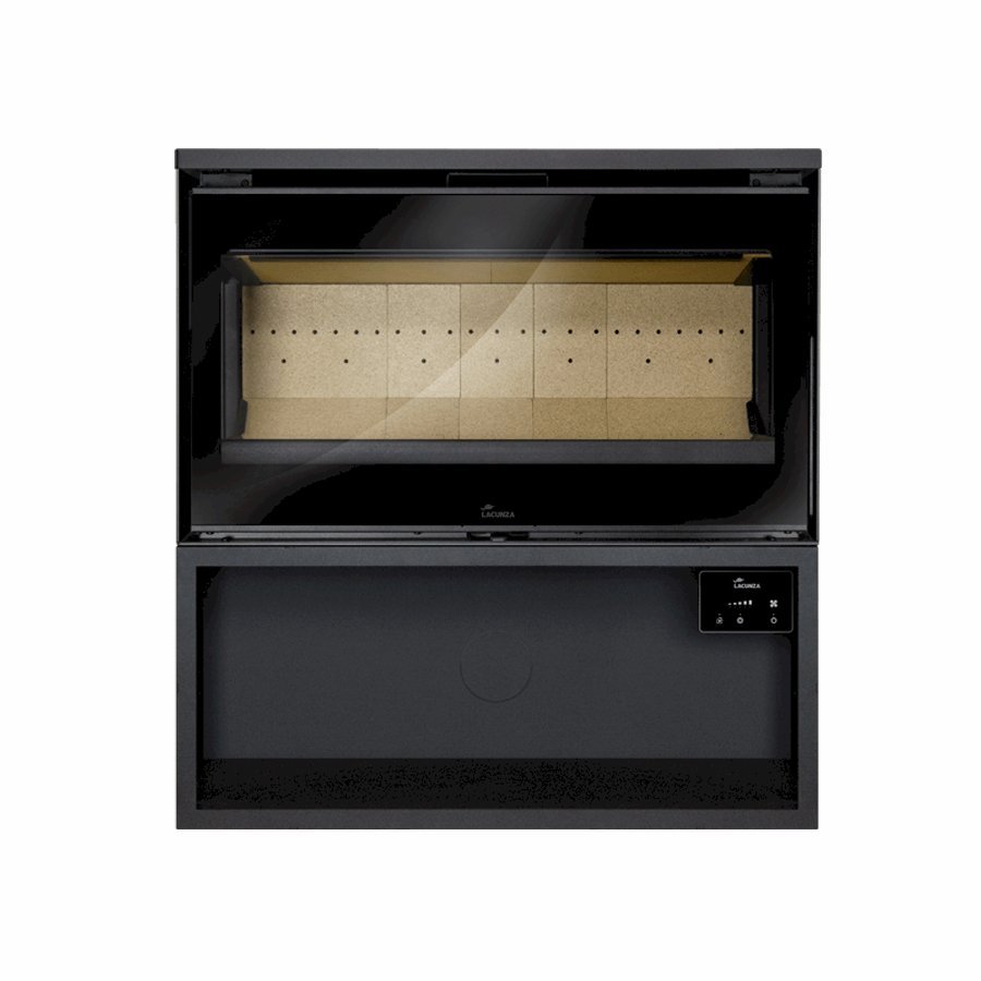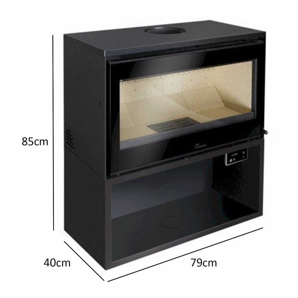 Estufa de acero frontal, interior en vermiculita gruesa.