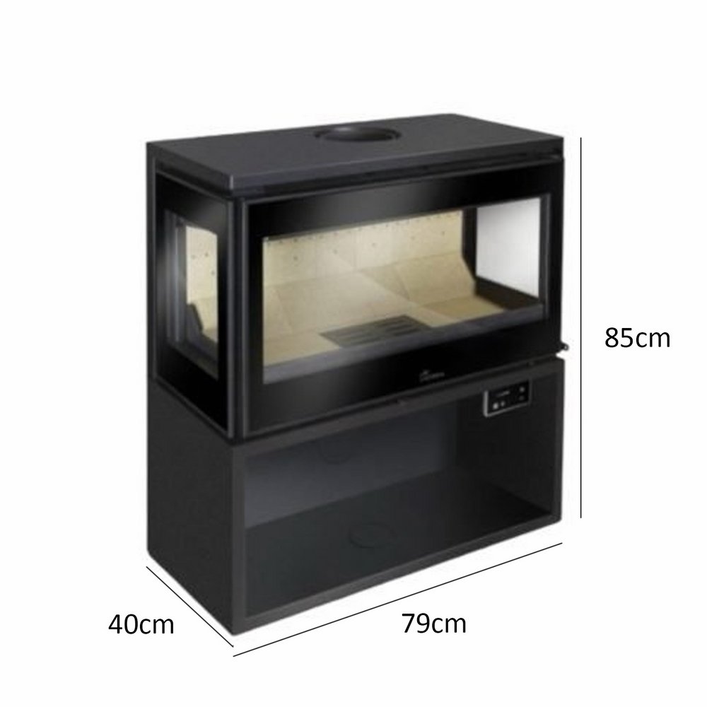 Novedoso concepto de estufa de diseño moderno con sistema de ventilación integrado mediante turbina que podemos regular e incluso apagar (Silence Mode). Disponible esta opcion con banco que se puede utilizar como leñero . Estufa de acero frontal, interior en vermiculita gruesa. Estufa con ventilación (turbina tangencial centrífuga). ¡Nuevo! Potenciómetro de serie: 5 velocidades, Man/Auto. y On/Off con mando a distancia. Hogar de vermiculita. / Sistema de doble combustión. Toma de aire exterior (Ø 80 mm). / Monomando: control de combustión con un solo mando. Sistema de cristal limpio. / Silence Mode: apagado de turbinas con fuego encendido. Versión frontal apta para Viviendas de Bajo Consumo (certificada). Potencia Nominal/Max. en Kw. 10/13 / Rendimiento % 79 / Metros Calefactables M² (con altura de 2,50 m) 89 / Sistema Cristal Limpio Si / Doble Combustión Si / En Rincón No / Caras 1 / Cajón Cenicero Si / Turbinas Si