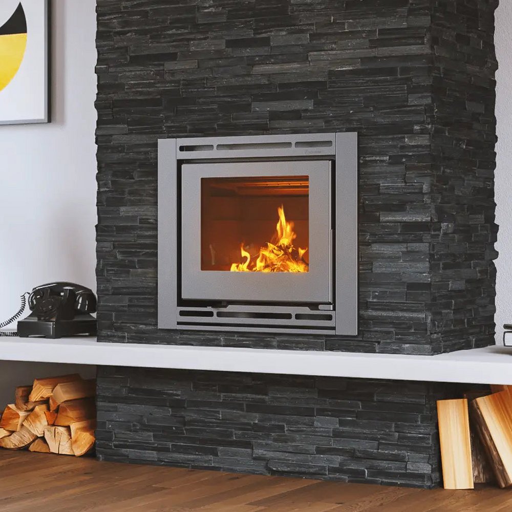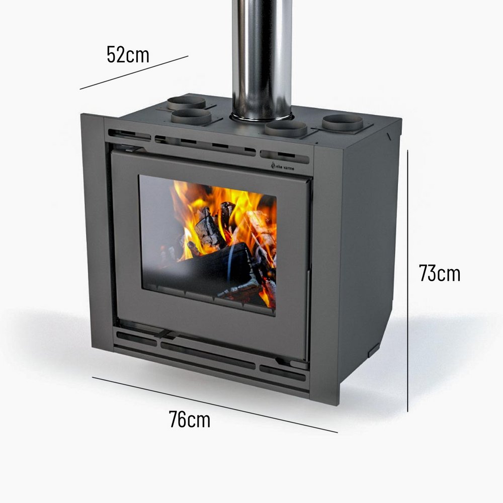 Las estufas Praga de Eko Varmo combinan la calidad de las turbinas Luft con el estilo rústico de las tejuelas refractarias, en un formato insertable que permite empotrarla en la pared. El vidrio vitrocerámico Scotts Robax asegura resistencia y estética, haciendo de la Praga una opción excelente para quienes buscan eficiencia y diseño en una estufa rústica.