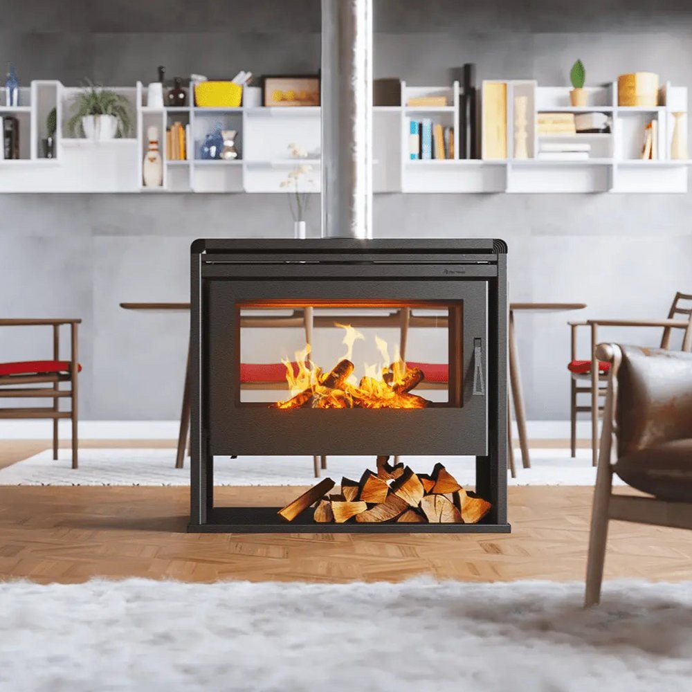 La estufa Rapsodia Doble Frente de Eko Varmo es un clásico que combina un diseño rústico con la practicidad de las tejuelas refractarias, en un formato doble frente que permite su instalación al centro de una habitación, creando un ambiente cálido y acogedor en tu hogar.