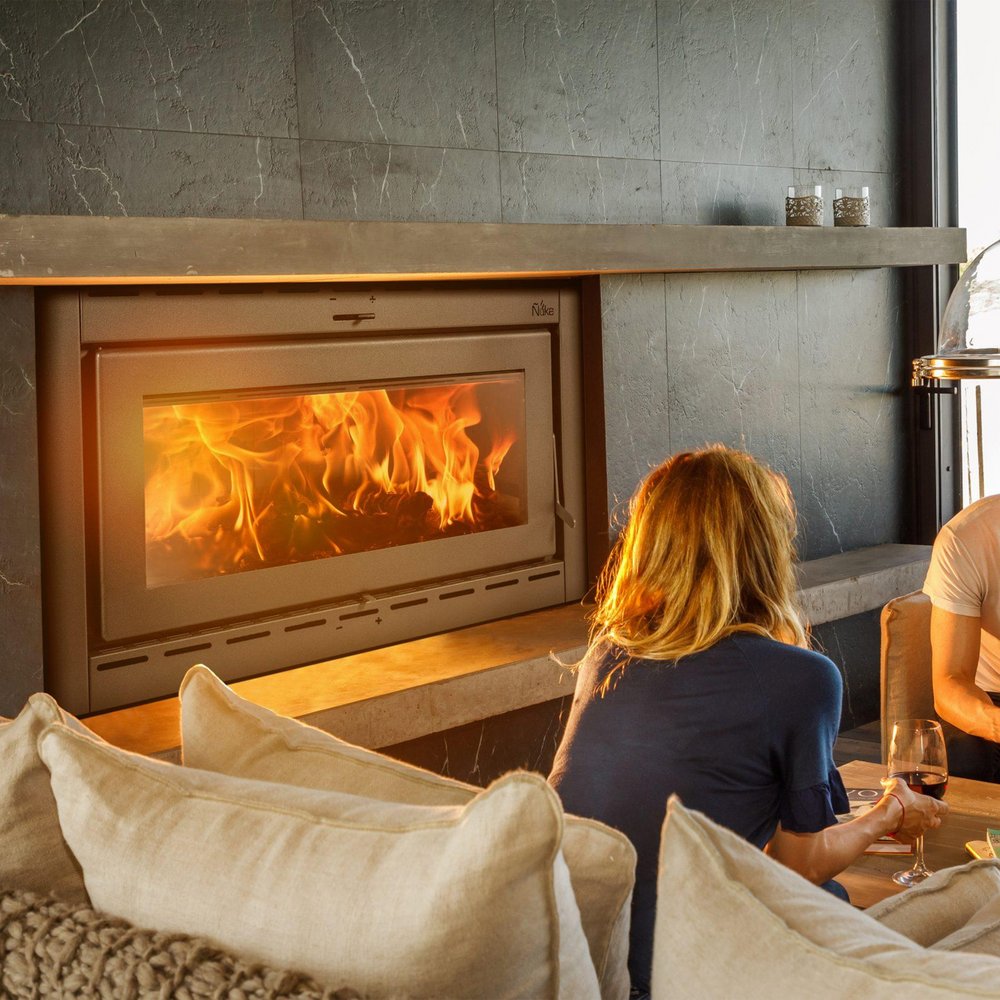 Su menor altura le permite ajustarse mejor a hogares existentes, con su diseño más apaisado logra una visión más amplia del fuego y los detalles de terminación de la línea Ñuke. Preparado para poner forzadores eléctricos y derivar aire caliente a varios ambientes.