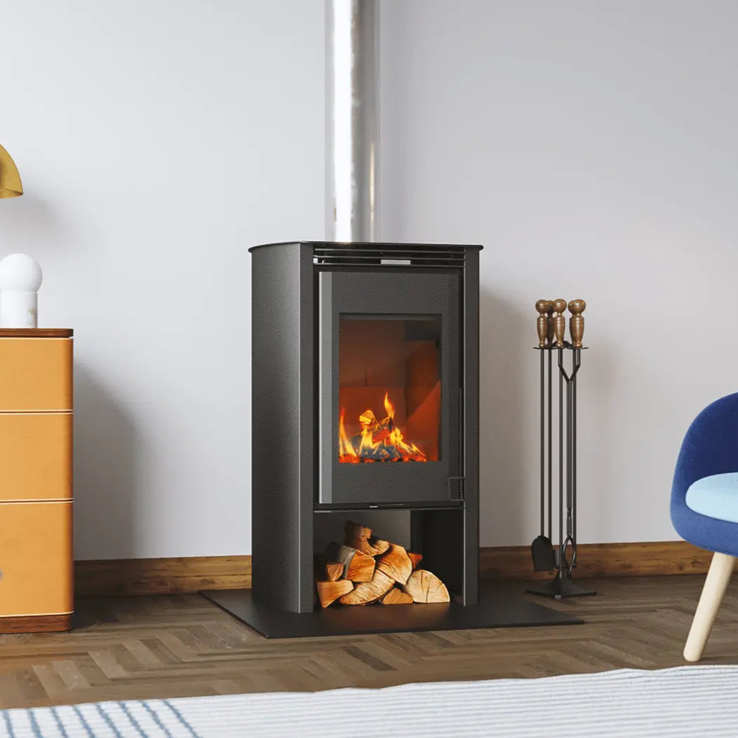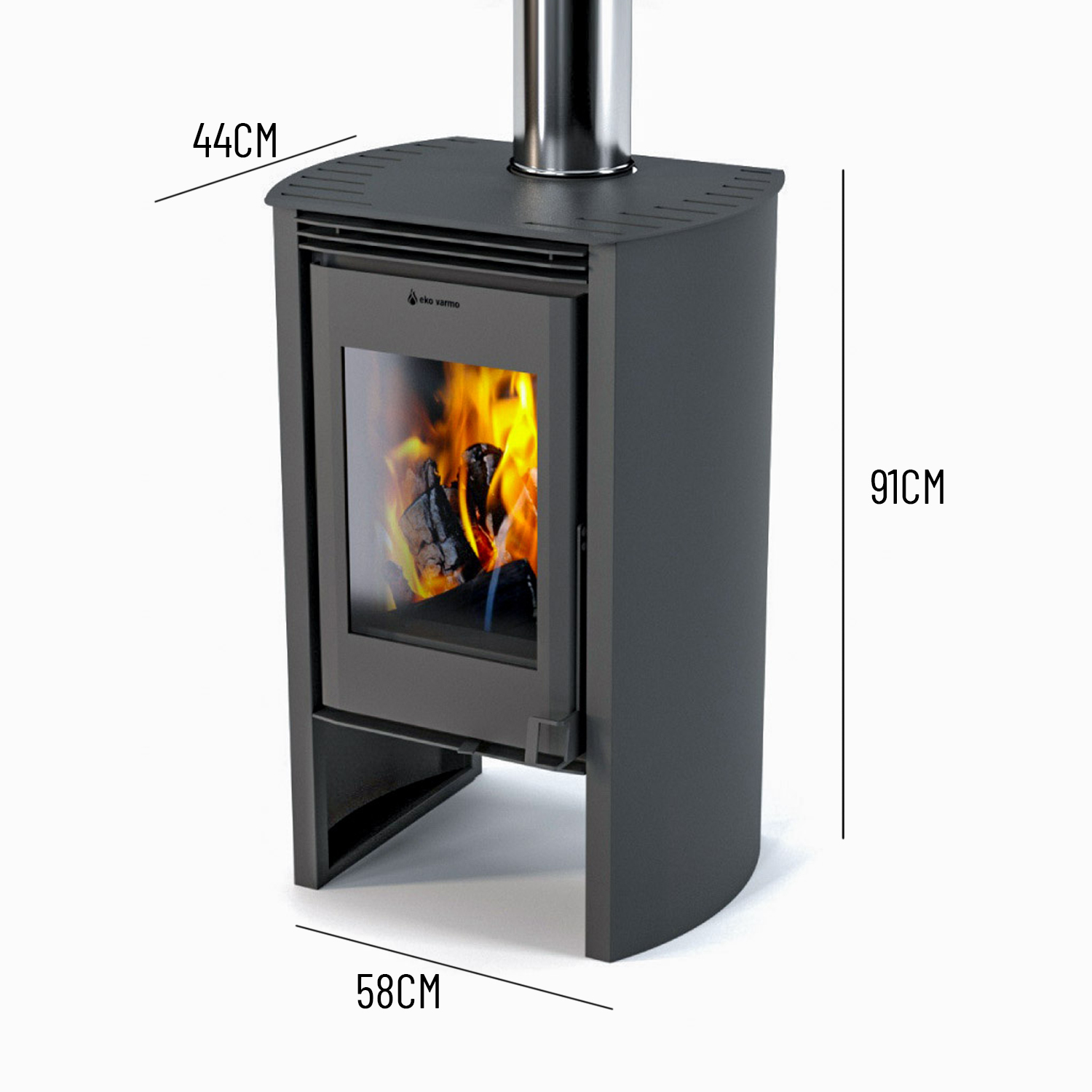 Las estufas Turín de Eko Varmo destaca por su diseño con laterales redondeados, lo que permite su instalación en esquinas y espacios reducidos. El revestimiento de vermiculita le otorga una alta eficiencia. Esta línea es perfecta para quienes buscan combinar funcionalidad y estilo en su hogar.